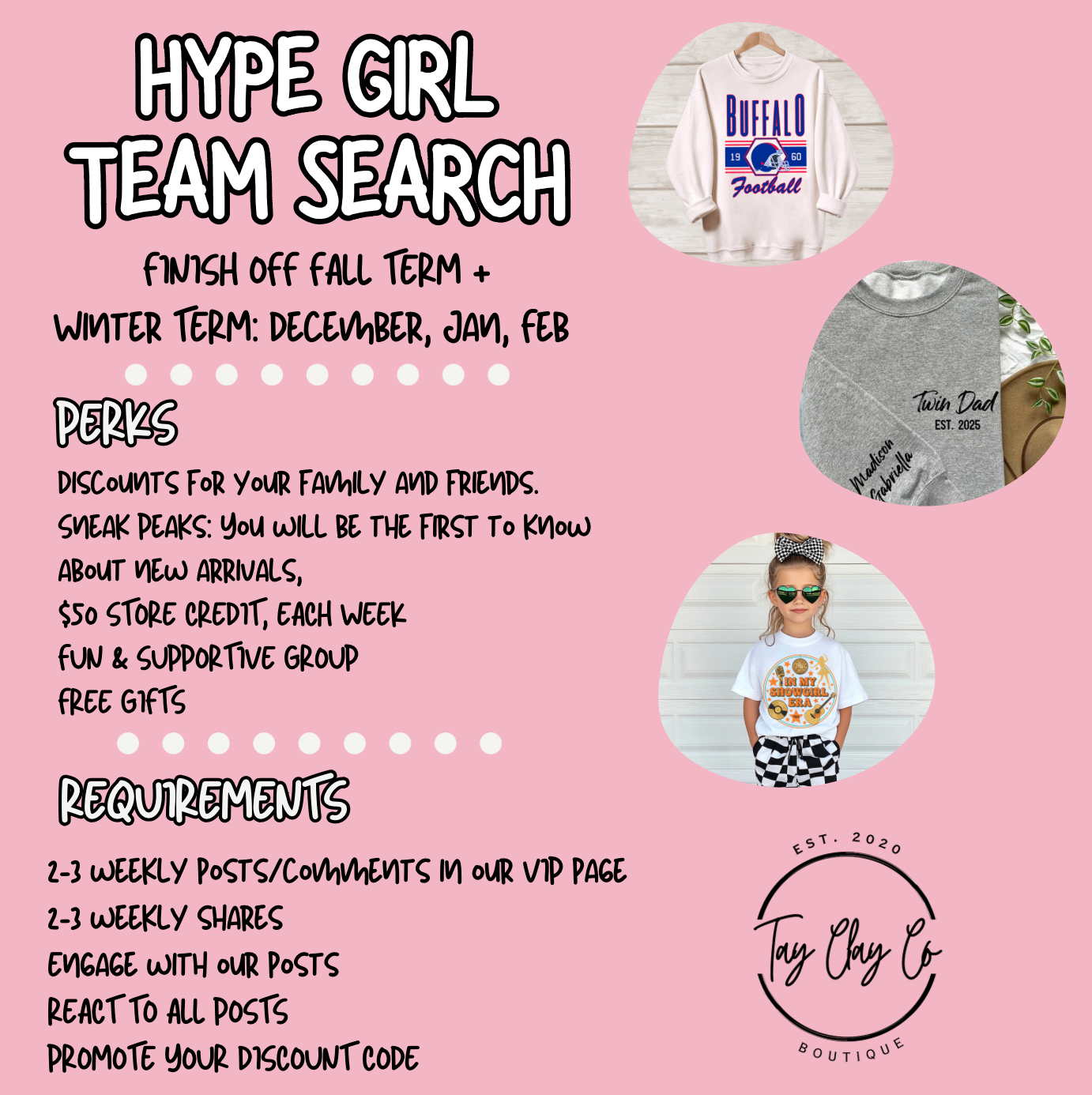 We are still searching for a few more Hype Girls for our Fall/Winter term!